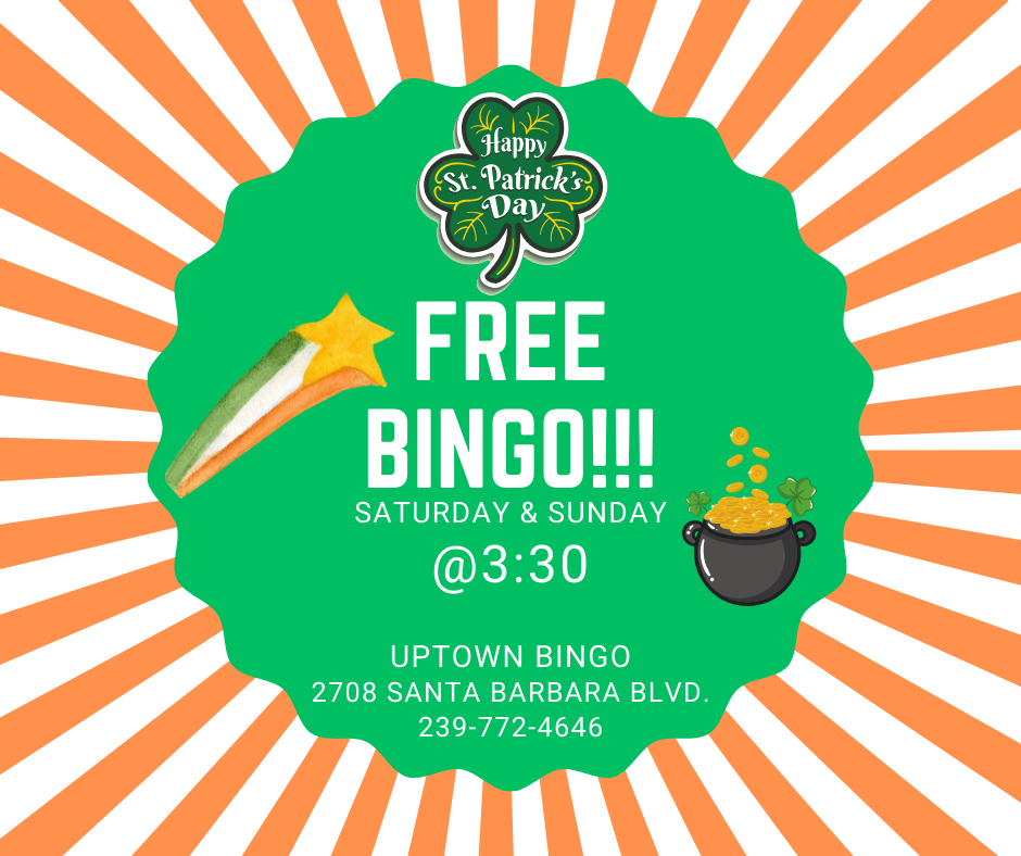 You can reach us at 239.772.4646 (239.77.BINGO). We are here 7 days a week, starting at 10:30 A.M., to answer your questions. You can also stop by, follow us on "Facebook" @ Uptown-Bingo-of-Cape-Coral (click the fb logo above), or you can contact us at our e-mail address: office@uptownbingo.org